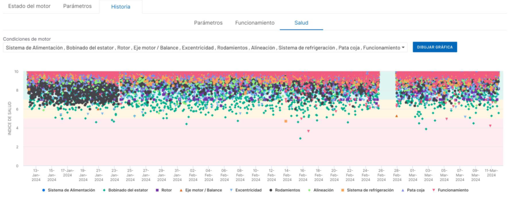 Evaluación detallada del estado de los equipos mediante parámetros como desempeño y salud.